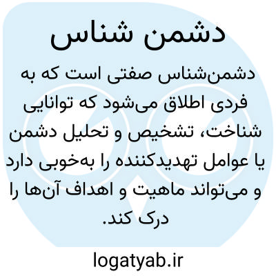 دشمنشناس صفتی است که به فردی اطلاق میشود که توانایی شناخت، تشخیص و تحلیل دشمن یا عوامل تهدیدکننده را بهخوبی دارد و میتواند ماهیت و اهداف آنها را درک کند. این واژه نشاندهنده سطح بالایی از آگاهی، هوشیاری و دقت در برخورد با خطرات و موقعیتهای حساس است و معمولاً در زمینههای اجتماعی، سیاسی و حتی فردی به کار میرود. دشمنشناس کسی است که با بررسی نشانهها، رفتارها و شرایط، تهدیدهای پنهان و آشکار را شناسایی کرده و از فریب یا غافلگیری جلوگیری میکند. این ویژگی مستلزم داشتن تجربه، تحلیل عقلانی و توان پیشبینی پیامدهای اقدامات دیگران است و نقش مهمی در تصمیمگیریهای صحیح ایفا میکند. در ادبیات و فرهنگ، دشمنشناسی به عنوان یک فضیلت مطرح میشود که فرد را از آسیبها و شکستها دور نگه میدارد. این مفهوم همچنین به معنای درک تفاوت میان دوست و دشمن و تشخیص نیتهای واقعی افراد است که در روابط انسانی اهمیت زیادی دارد. دشمنشناس با حفظ هوشیاری و پرهیز از سادهانگاری، از منافع خود و دیگران دفاع میکند و آمادگی لازم برای مقابله با چالشها را دارد. این صفت میتواند در سطح فردی، اجتماعی یا ملی مطرح شود و در هر سطحی به حفظ امنیت و ثبات کمک میکند. به طور کلی، مفهوم این واژه ترکیبی از شناخت، تحلیل، احتیاط و آیندهنگری است که فرد را در برابر تهدیدها توانمند ساخته و امکان واکنش آگاهانه و مؤثر را فراهم میکند.