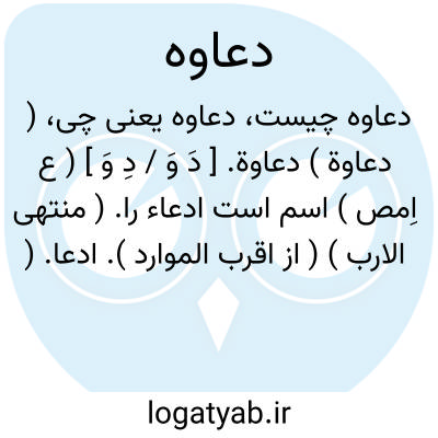 ( دعاوة ) دعاوة. [ دَ وَ / دِ وَ ] ( ع اِمص ) اسم است ادعاء را. ( منتهی الارب ) ( از اقرب الموارد ). ادعا. ( ناظم الاطباء ). رجوع به ادعا و ادعاء شود.