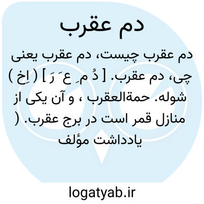 دم عقرب. [ دُ م ِ ع َ رَ ] ( اِخ ) شوله. حمةالعقرب، و آن یکی از منازل قمر است در برج عقرب. ( یادداشت مؤلف ):