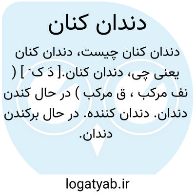 دندان کنان.[ دَ ک َ ] ( نف مرکب، ق مرکب ) در حال کندن دندان. دندان کننده. در حال برکندن دندان. ( از یادداشت مؤلف ). || کنایه از قطعکننده طمع باشد. ( از برهان ) ( آنندراج ) ( از ناظم الاطباء ). || عجز والحاح و زاری کنان و ترسان. ( غیاث ) ( از آنندراج ). کنایه از بیقراری و زاری. ( از برهان ) ( آنندراج ) ( از ناظم الاطباء ):