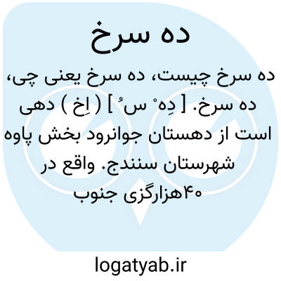 ده سرخ.[ دِه ْ س ُ ] ( اِخ ) دهی است از دهستان ولدبیگی بخش ثلاث شهرستان کرمانشاهان. واقع در 12هزارگزی جنوب خاوری نهرآب. سکنه آن 200 تن. آب آن از چشمه های کوچک متعدد راه آن تابستان اتومبیل می توان برد. ساکنین از ایل ولدبیگی هستند. ( از فرهنگ جغرافیایی ایران ج 5 ).