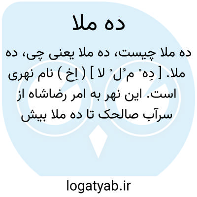 ده ملا. [ دِه ْ م ُل ْ لا ] ( اِخ ) نام نهری است. این نهر به امر رضاشاه از سرآب صالحک تا ده ملا بیش از سی و ششهزار گز امتداد یافت و جمله آبادیهای اطراف که دیم کار و فقیر بودند به زراعت آبی پرداختند. سپس آن نهررا تا هندیجان نیز ممتد ساختند. ( یادداشت مؤلف ).