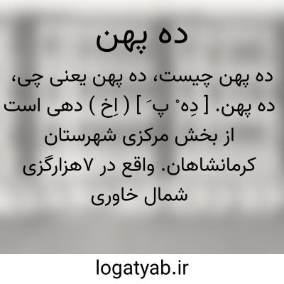 ده پهن. [ دِه ْ پ َ ] ( اِخ ) دهی است از بخش مرکزی شهرستان کرمانشاهان. واقع در 7هزارگزی شمال خاوری کرمانشاه. سکنه آن 400 تن. آب آن از چشمه کوچک و چاه قره سو تأمین می شود. ( از فرهنگ جغرافیایی ایران ج 5 ).