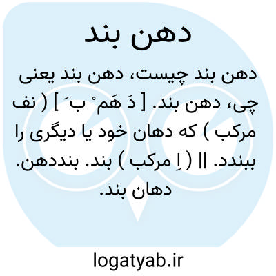 دهن بند. [ دَ هَم ْ ب َ ] ( نف مرکب ) که دهان خود یا دیگری را ببندد. || ( اِ مرکب ) بند. بنددهن. دهان بند. چیزی که با او دهان کسی بند توان کرد اعم از آنکه تعویذ باشد یا غیر آن. ( از آنندراج ):