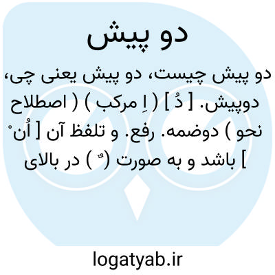 دوپیش. [ دُ ] ( اِ مرکب ) ( اصطلاح نحو ) دوضمه. رفع. و تلفظ آن [ اُن ْ ] باشد و به صورت ( ٌ ) در بالای حرف قرار می گیرد: رجل ٌ فخر. ( یادداشت مؤلف ).