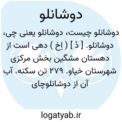 دوشانلو. [ دُ ] ( اِخ ) دهی است از دهستان مشگین بخش مرکزی شهرستان خیاو. 279 تن سکنه. آب آن از دوشانلوچای تأمین می شود. راه، شوسه. ( از فرهنگ جغرافیایی ایران ج 4 ).