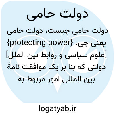 {protecting power} [علوم سیاسی و روابط بین الملل] دولتی که بنا بر یک موافقت نامۀ بین المللی امور مربوط به تحت الحمایگی دولت تحت الحمایه را بر عهده دارد