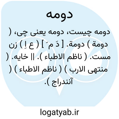 ( دومة ) دومة. [ دَ م َ ] ( ع اِ ) زن مست. ( ناظم الاطباء ). || خایه. ( منتهی الارب ) ( ناظم الاطباء ) ( آنندراج ).