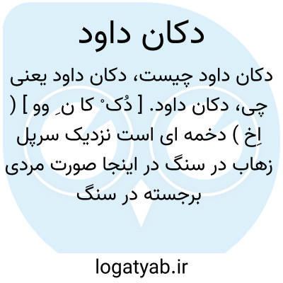 دکان داود. [ دُک ْ کا ن ِ وو ] ( اِخ ) دخمه ای است نزدیک سرپل زهاب در سنگ در اینجا صورت مردی برجسته در سنگ کنده شده، این مرد لباس مادی بر تن و بَرْسَمی بدست دارد و در حال عبادت ایستاده است. ( از تاریخ ایران باستان ص 221 ).