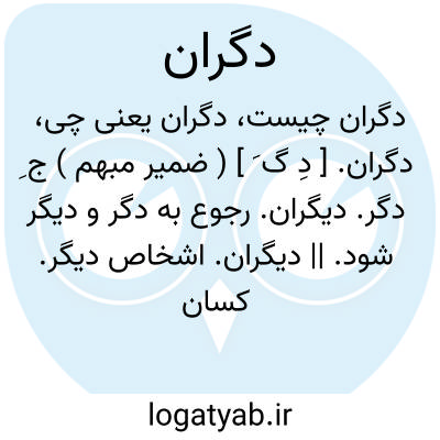 دگران. [ دِ گ َ ] ( ضمیر مبهم ) ج ِ دگر. دیگران. رجوع به دگر و دیگر شود. || دیگران. اشخاص دیگر. کسان دیگر. افراد دیگر جز خود: