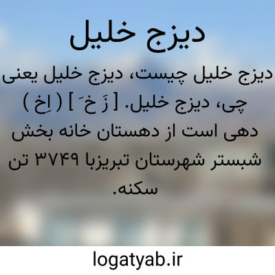 دیزج خلیل. [ زَ خ َ ] ( اِخ ) دهی است از دهستان خانه بخش شبستر شهرستان تبریزبا 3749 تن سکنه. ( از فرهنگ جغرافیائی ایران ج 4 ).