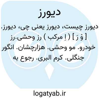 دیورز. [ وْ رَ ] ( اِ مرکب ) رز وحشی.رز خودرو. مو وحشی. هزارچشان. انگور جنگلی. کرم البری. رجوع به جنگل شناسی ج 2 ص 244 و انگور جنگلی شود.