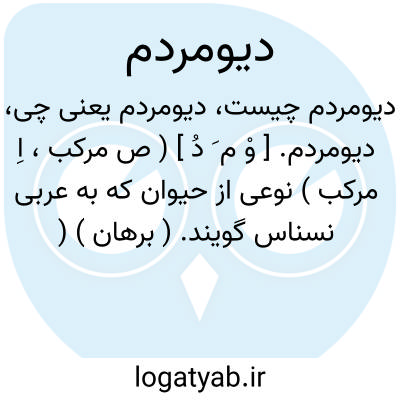 که عاقل دیومردم گویدش نام.ناصرخسرو.قومی دیومردمند که مردم خورند و شاه ایشان زنگی است مردم خوار. ( اسکندرنامه نسخه سعید نفیسی ). اما با دیومردم کار تو آسان تر باشد که با پریان. ( اسکندرنامه نسخه سعید نفیسی ).