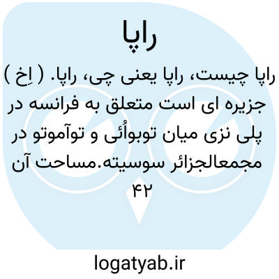 راپا. ( اِخ ) جزیره ای است متعلق به فرانسه در پلی نزی میان توبواُئی و توآموتو در مجمعالجزائر سوسیته.مساحت آن 42 کیلومتر مربع و سکنه آن 200 تن است.