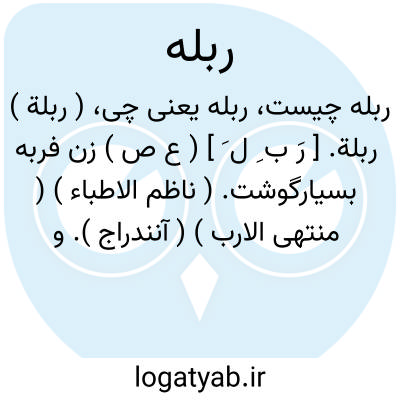 ( ربلة ) ربلة. [ رَ ب ِ ل َ ] ( ع ص ) زن فربه بسیارگوشت. ( ناظم الاطباء ) ( منتهی الارب ) ( آنندراج ). و رجوع به ربلاء شود. || ماده شتر فربه. ( از مهذب الاسماء ). || زن بزرگ رَبَلات. ( منتهی الارب ) ( آنندراج ) ( ناظم الاطباء ) ( از اقرب الموارد ). و رجوع به ربلاء شود. || باریک ران خردکُس. ( از منتهی الارب ) ( از ناظم الاطباء ) ( از آنندراج ). و رجوع به ربلاء شود.