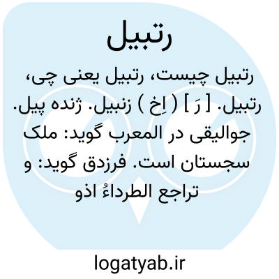 رتبیل. [ رَ ] ( اِخ ) زنبیل. ژنده پیل. جوالیقی در المعرب گوید: ملک سجستان است. فرزدق گوید: و تراجع الطرداءُ اذو ثقوا بالامن من رتبیل و الشحر ( الشحر ساحل مهرة بالیمن و رتبیل ملک سجستان ). ( المعرب جوالیقی چ مصر ص 163 ). در المعرب جوالیقی چ مصر این کلمه را در باب الراء بین «راوند» و «رمکة» آورده است، پس راهی برای زنده پیل و ژنده پیل خواندن این کلمه نمی ماند. ( یادداشت مرحوم دهخدا ). و رجوع به زنبیل و تاریخ سیستان ص 91 و 271 شود.