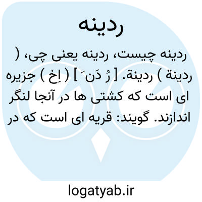 ( ردینة ) ردینة. [ رُ دَن َ ] ( اِخ ) جزیره ای است که کشتی ها در آنجا لنگر اندازند. گویند: قریه ای است که در آنجا نیزه ها یافت شود. بنابر قول دیگر بلوکی است که در آنجا نیزه بعمل آورند. ( از معجم البلدان ). و رجوع به ماده بعد شود.