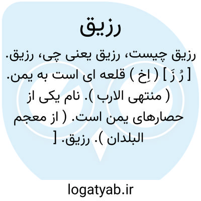 رزیق. [ رُ زَ ] ( اِخ ) قلعه ای است به یمن. ( منتهی الارب ). نام یکی از حصارهای یمن است. ( از معجم البلدان ).