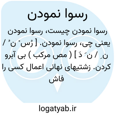 رسوا نمودن. [ رُس ْ ن ُ / ن ِ / ن َ دَ ] ( مص مرکب ) بی آبرو کردن. زشتیهای نهانی اعمال کسی را فاش ساختن. رسوا کردن. ( از یادداشت مؤلف ). ذأم. ذحم. ( منتهی الارب ):