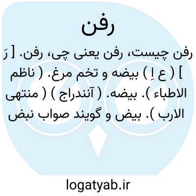رفن. [ رَ ] ( ع اِ ) بیضه و تخم مرغ. ( ناظم الاطباء ). بیضه. ( آنندراج ) ( منتهی الارب ). بیض و گویند صواب نبض است. ( از اقرب الموارد ). در قاموس «بیض » و در لسان «نبض » آمده ( از ابن الاعرابی ) و بنظر مؤلف قول دومی درست تر است. زیرا ذیل همان ماده نوشته: «ارفان الرجل: نَفر ثُم سکن ». و هنگام حرکت کردن نبض شدت می یابد و در این ماده هیچ قرینه ای برای معنی «بیض » وجود ندارد. ( از نشوءاللغة ص 29 ).