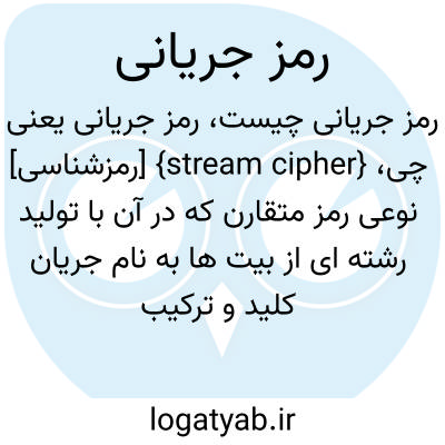 {stream cipher} [رمزشناسی] نوعی رمز متقارن که در آن با تولید رشته ای از بیت ها به نام جریان کلید و ترکیب آن با متن اصلی رمزگذاری انجام می شود