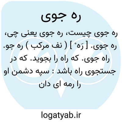 ره جوی. [ رَه ْ ] ( نف مرکب ) ره جو. راه جوی. که راه را بجوید. که در جستجوی راه باشد: