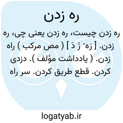 ره زدن. [ رَه ْ زَ دَ ] ( مص مرکب ) راه زدن. ( یادداشت مؤلف ). دزدی کردن. قطع طریق کردن. سر راه بر کسی گرفتن به قصد دزدی: