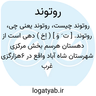 روتوند. [ ت َ وَ ] ( اِخ ) دهی است از دهستان چمچال بخش صحنه از شهرستان کرمانشاهان واقع در 22هزارگزی جنوب باختری صحنه و 3هزارگزی شرق شوسه کرمانشاه به همدان. دشت و سردسیر است و 110 تن سکنه دارد که مذهب تشیع دارند و به لهجه کردی سخن میگویند. آب آن از چشمه تأمین میشود و محصولش غلات دیم، توتون و حبوب و شغل مردم زراعت است وراه مالرو دارد. ( از فرهنگ جغرافیایی ایران ج 5 ).