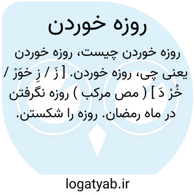 روزه خوردن. [ زَ / زِ خوَرْ / خُرْ دَ ] ( مص مرکب ) روزه نگرفتن در ماه رمضان. روزه را شکستن.