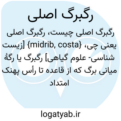 {midrib, costa} [زیست شناسی- علوم گیاهی] رگبرگ یا رگۀ میانی برگ که از قاعده تا رأس پهنک امتداد دارد