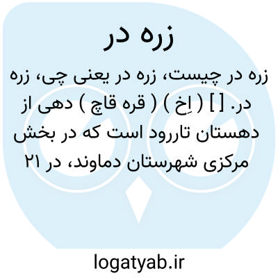 زره در. [ ] ( اِخ ) ( قره قاچ ) دهی از دهستان تاررود است که در بخش مرکزی شهرستان دماوند، در 21 هزارگزی جنوب باختری دماوند واقع است و 550 تن سکنه دارد. ( از فرهنگ جغرافیایی ایران ج 1 ).
