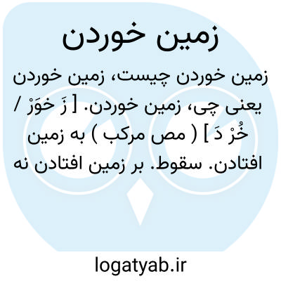 زمین خوردن. [ زَ خوَرْ / خُرْ دَ ] ( مص مرکب ) به زمین افتادن. سقوط. بر زمین افتادن نه به اراده. ( یادداشت بخط مرحوم دهخدا ). || تنزل فاحش کردن بها و قیمت چیزی ناگهان. سخت تنزل کردن بهای چیزی. سخت بی مشتری شدن چیزی که پیش پرمشتری بود. ( یادداشت بخط مرحوم دهخدا ).