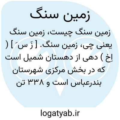 زمین سنگ. [ زَ س َ ] ( اِخ ) دهی از دهستان شمیل است که در بخش مرکزی شهرستان بندرعباس است و 338 تن سکنه دارد. ( از فرهنگ جغرافیایی ایران ج 8 ).