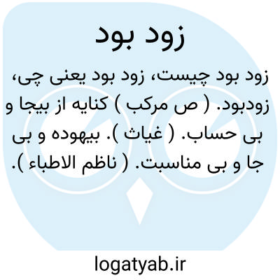 زودبود. ( ص مرکب ) کنایه از بیجا و بی حساب. ( غیاث ). بیهوده و بی جا و بی مناسبت. ( ناظم الاطباء ). کنایه از بی جا و بی حساب. و این را در مقامی گویند که شخص کاری بی تحاشی کند و بی پروائی نماید. ( آنندراج ).