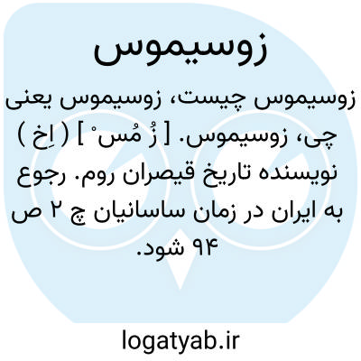 زوسیموس. [ زُ مُس ْ ] ( اِخ ) نویسنده تاریخ قیصران روم. رجوع به ایران در زمان ساسانیان چ 2 ص 94 شود.