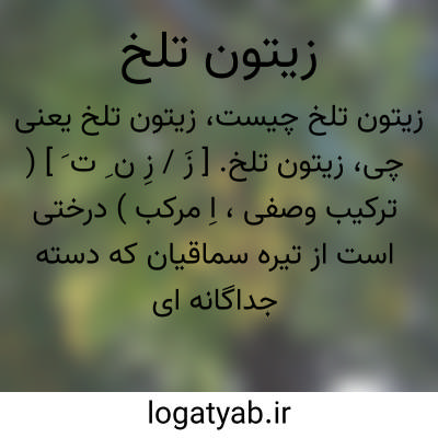 زیتون تلخ. [ زَ / زِ ن ِ ت َ ] ( ترکیب وصفی، اِ مرکب ) درختی است از تیره سماقیان که دسته جداگانه ای از این تیره به نام آزادرخت ها را به وجود می آورد. گلهایش بنفش و میوه اش سمی است. ( فرهنگ فارسی معین ). نامی است که در مازندران به «زنزلخت » دهند. این درخت در جنگلهای ساحلی خزر،لاهیجان، رامسر، نور، میاندره و هم در آستارا هست. ( یادداشت بخط مرحوم دهخدا ). درختی است از تیره ملیاسه و از جنس ملیا گونه ای که در جنگلهای شمال موجود است آزادرخ می باشد. آنرا در مازندران زیتون تلخ، در نور شال پستانه، در لاهیجان شیطان زیتون، در رامسر دیوزیت و در آمل شال سنجد می خوانند. گونه دیگری از جنس ملیا در بندرعباس و چاه بهار موجود است که هنوز نام علمی آن تعیین نگردیده و گویا از خارج به ایران آورده باشند. آنرا در چاه بهار و عباسی چربش می نامند. زیتون تلخ درختی است که به 10 تا 15 متر بلندی می رسد،چوبش زرد یا پشت گلی و سخت است و در درودگری و ساخت ادوات موسیقی بکار می رود. این درخت را در تهران و بعضی نقاط دیگر برای زینت باغ می کارند. ( جنگل شناسی کریم ساعی ج 1 ص 249 ). رجوع به زنزلخت و شال پستانه شود.