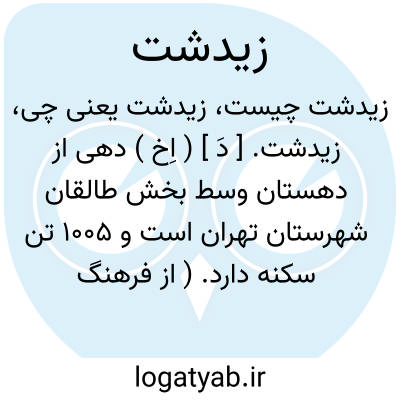 زیدشت. [ دَ ] ( اِخ ) دهی از دهستان وسط بخش طالقان شهرستان تهران است و 1005 تن سکنه دارد. ( از فرهنگ جغرافیایی ایران ج 1 ).