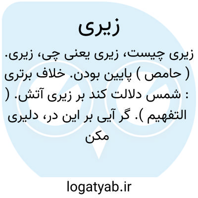 زیری. ( حامص ) پایین بودن. خلاف برتری: شمس دلالت کند بر زیری آتش. ( التفهیم ).