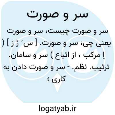 سر و صورت. [ س َ رُ رَ ] ( اِ مرکب، از اتباع ) سر و سامان. ترتیب. نظم.