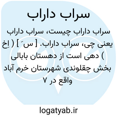 سراب داراب. [ س َ ] ( اِخ ) دهی است از دهستان بابالی بخش چقلوندی شهرستان خرم آباد واقع در 7 هزارگزی جنوب چقلوندی و 2 هزارگزی باختر راه فرعی چقلوندی به بروجرد. هوای آنجا سرد و دارای 240 تن سکنه است. آب آنجا از چشمه ها تأمین میشود. محصول آنجا غلات، صیفی، لبنیات، پشم. شغل اهالی زراعت و گله داری است. صنایع دستی زنان سیاه چادربافی. راه آن مالرو است. ساکنین از طایفه سیلاورزی بوده زمستان رابه قشلاق میروند. ( از فرهنگ جغرافیایی ایران ج 6 ).