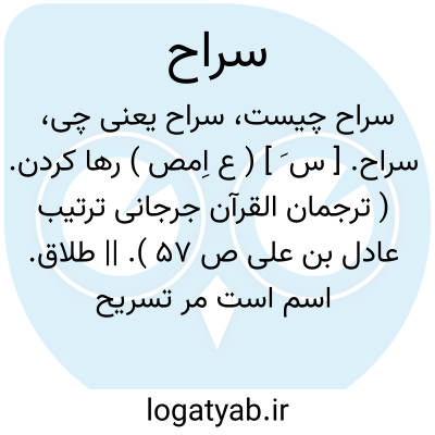 سراح. [ س َ ] ( ع اِمص ) رها کردن. ( ترجمان القرآن جرجانی ترتیب عادل بن علی ص 57 ). || طلاق. اسم است مر تسریح را. ( منتهی الارب ): و سرحوهن سراحاً جمیلاً. ( قرآن 49/33 ). ( آنندراج ) ( از اقرب الموارد ). || و در مثل است: السراح من النجاح؛ یعنی اگر بر روا کردن حاجت مرد توانا نیستی او را مأیوس کن که در نظر او مانند روا کردن است. ( اقرب الموارد )؛ یعنی کار او را یکسره کن، نظیر: البأس احدی. || آسانی و روانی.شمس قیس نویسد: و سراح در لغت عرب آسانی و روانی باشد و گویند فعلت هذا فی سراح و رواح؛ این کار برکردم به سهولت و آسانی. ( المعجم فی معاییر اشعار العجم ).افعله فی سراح و رواح؛ فی سهولة. ( اقرب الموارد ).