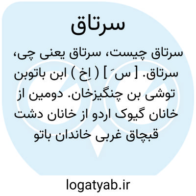 سرتاق. [ س َ ] ( اِخ ) ابن باتوبن توشی بن چنگیزخان. دومین از خانان گیوک اردو از خانان دشت قبچاق غربی خاندان باتو متوفی در 654 هَ. ق. رجوع به تاریخ گزیده ص 576 و تاریخ غازان ص 2 و جهانگشای جوینی ج 1 ص 223 شود.
