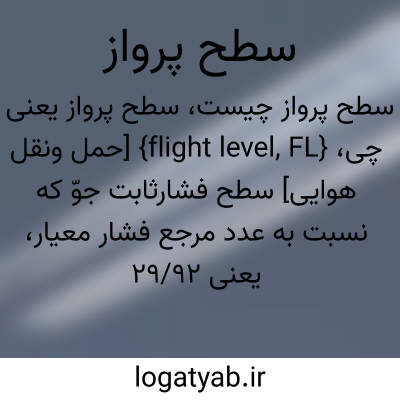 {flight level, FL} [حمل ونقل هوایی] سطح فشارثابت جوّ که نسبت به عدد مرجع فشار معیار، یعنی 29/92 اینچ جیوه، سنجیده می شود