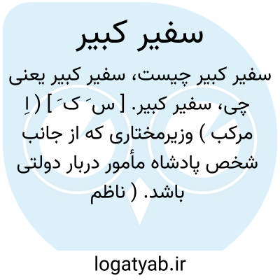 سفیر کبیر. [ س َ ک َ ] ( اِ مرکب ) وزیرمختاری که از جانب شخص پادشاه مأمور دربار دولتی باشد. ( ناظم الاطباء ). عالی ترین نماینده سیاسی یک کشور در کشور دیگر که امور سفارت کبری را در آن کشور اداره کند. ( فرهنگ فارسی معین ).