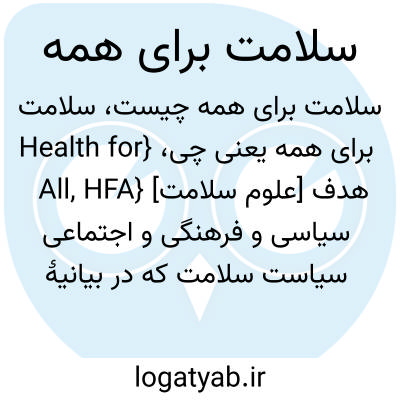 {Health for All, HFA} [علوم سلامت] هدف سیاسی و فرهنگی و اجتماعی سیاست سلامت که در بیانیۀ سازمان جهانی بهداشت در آلماتی مطرح شد
