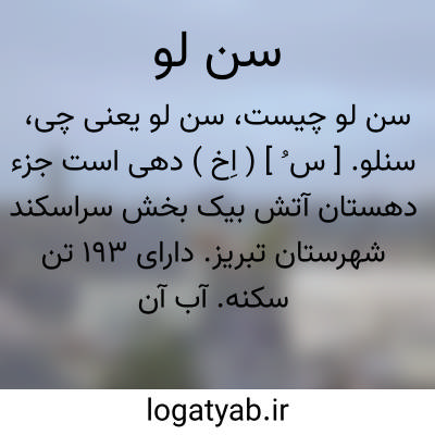 سنلو. [ س ُ ] ( اِخ ) دهی است جزء دهستان آتش بیک بخش سراسکند شهرستان تبریز. دارای 193 تن سکنه. آب آن از چشمه و رودخانه و محصول آنجا غلات و حبوبات است. ( از فرهنگ جغرافیائی ایران ج 4 ).