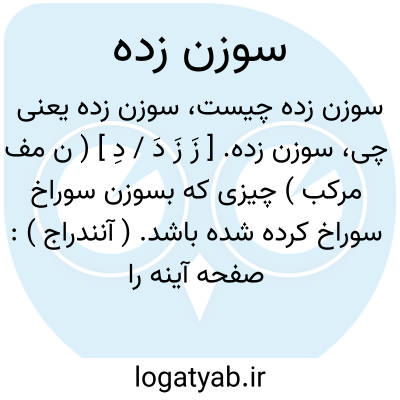 سوزن زده. [ زَ زَ دَ / دِ ] ( ن مف مرکب ) چیزی که بسوزن سوراخ سوراخ کرده شده باشد. ( آنندراج ):