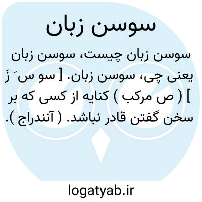 سوسن زبان. [ سو س َ زَ ] ( ص مرکب ) کنایه از کسی که بر سخن گفتن قادر نباشد. ( آنندراج ). عاجز در تکلم یعنی آنکه زبان وی مانند سوسن است. ( ناظم الاطباء ). || کنایه از فصیح و شیوا زبان. ( آنندراج ). فصیح و زبان آور یعنی زبان وی مانند گل سوسن و دارای همه قسم تکلم و تلفظ میباشد. ( از ناظم الاطباء ).