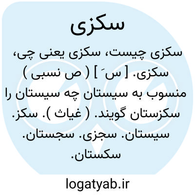 سکزی. [ س َ ] ( ص نسبی ) منسوب به سیستان چه سیستان را سکزستان گویند. ( غیاث ). سکز. سیستان. سجزی. سجستان. سکستان. سکزی. سیستانی: