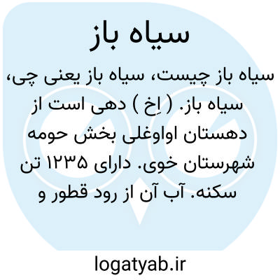 سیاه باز. ( اِخ ) دهی است از دهستان اواوغلی بخش حومه شهرستان خوی. دارای 1235 تن سکنه. آب آن از رود قطور و زارعان. محصول آنجا غلات، کرچک، انگور و شغل اهالی زراعت است. ( از فرهنگ جغرافیائی ایران ج 4 ).